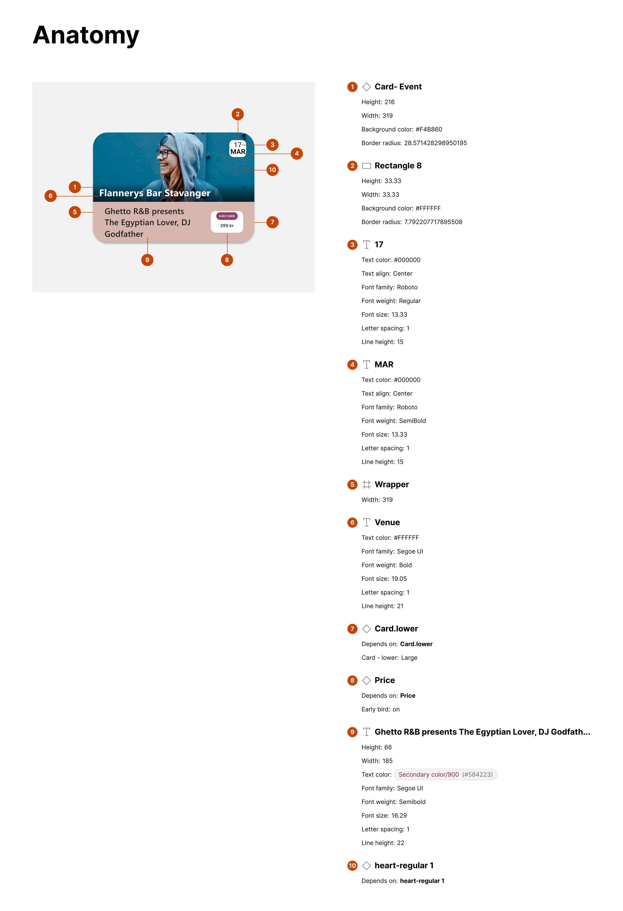 Anatomy of the event card component — showcasing structure, text styles, and visual hierarchy.
